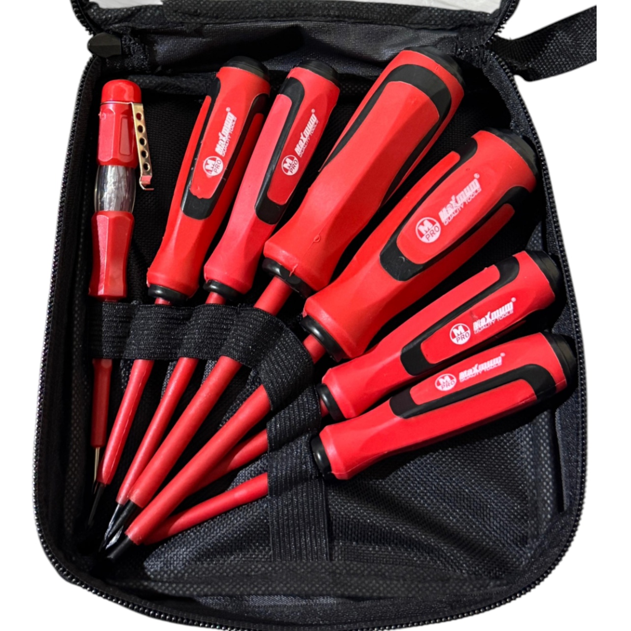 Набор диэлектрических отверток от "MAXIMUM" имеет все популярные размеры PH и SL и пробник напряжения в комплекте.