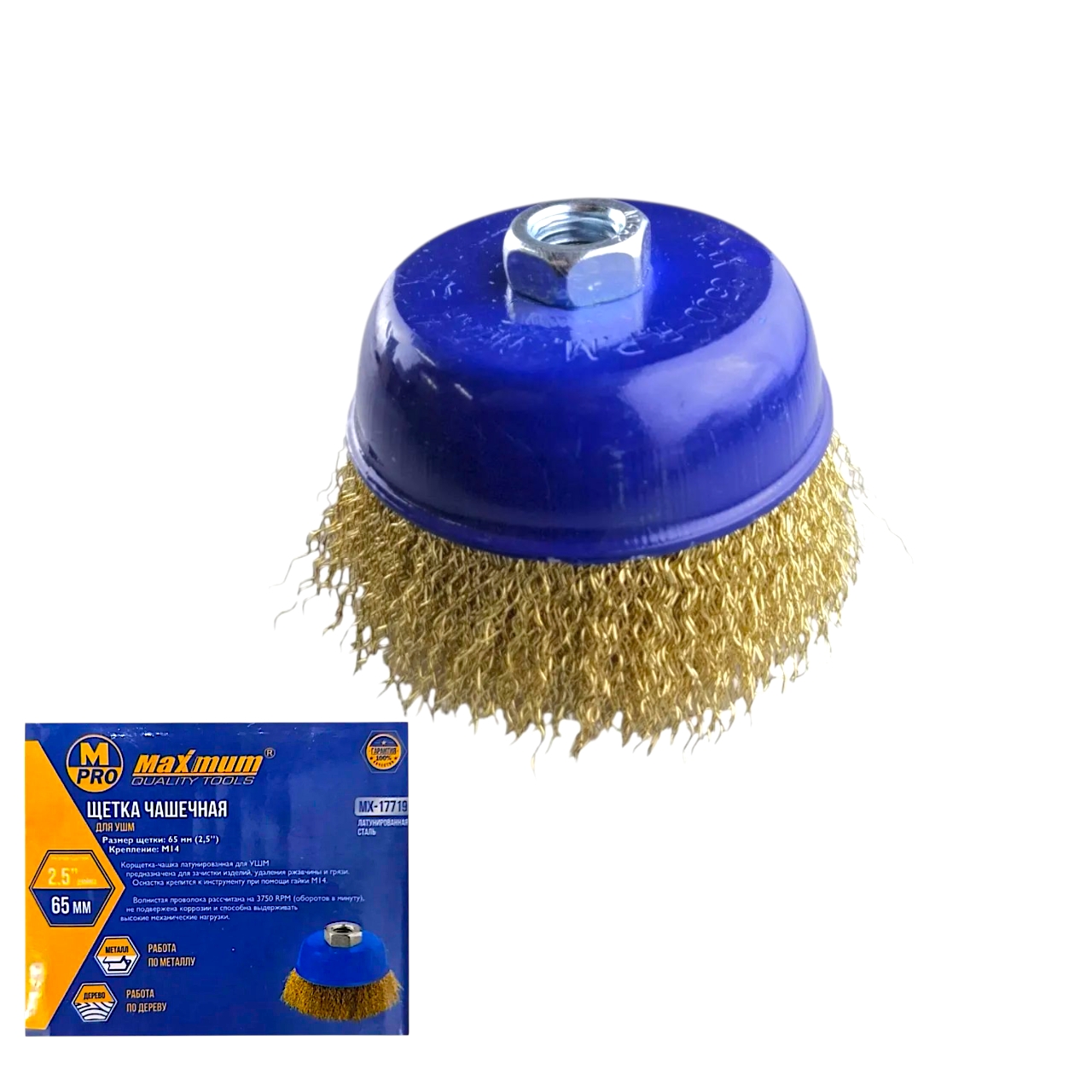 Чашечная латунированная корщетка 65 мм предназначена для установки на угловую шлифовальную машину (УШМ, "болгарку"). Она используется для интенсивной очистки, удаления стойких загрязнений и обработки больших площадей.